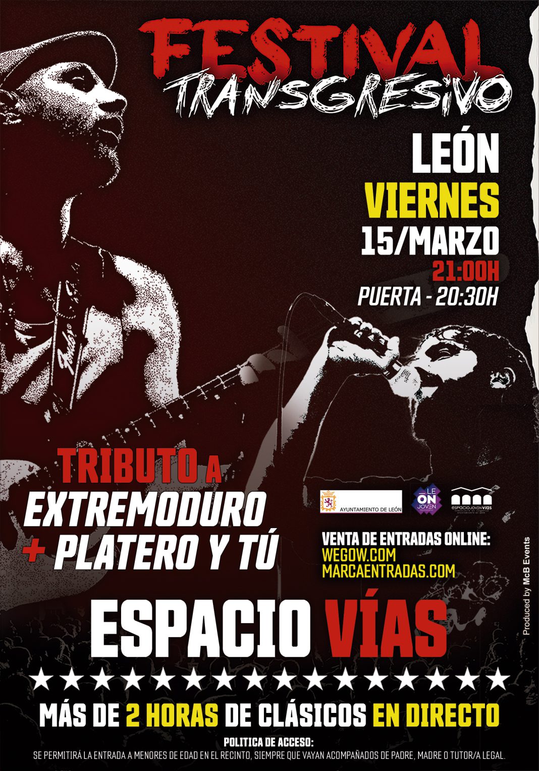 FESTIVAL TRANSGRESIVO es un formato de concierto dual formado en 2014 e interpretado por PlateRock (tributo a Platero y Tú) y Transgresivos (tributo a Extremoduro), los cuales se unen para ofrecer un espectáculo de más de 2 horas de clásicos en directo con “Deltoya Hasta que el Cuerpo aguante” y las canciones más emblemáticas del repertorio de dos de las bandas más importantes de la historia del rock nacional. Juntos emulan la Gira “Iros todos a tomar por Culo” que realizaron en el año 1997 con títulos como: Jesucristo García, So Payaso, Standby (Extremoduro) + El roce de tú cuerpo, Cigarrito, Hay poco rock’n’roll (Platero y tú) + otras composiciones de su carrera musical y discográfica.